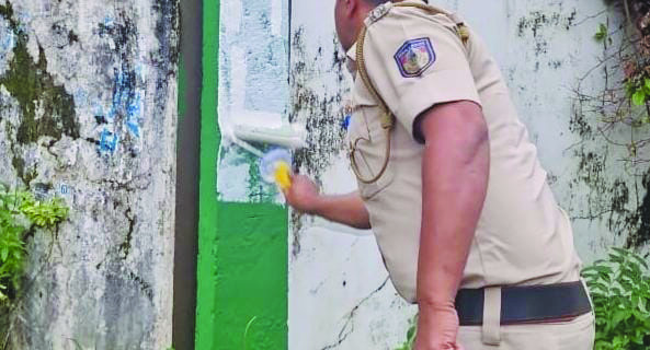ವಿದ್ಯುತ್ ಕಂಬಕ್ಕೆ ಬಳಿದ ಹಸಿರು ಬಣ್ಣವನ್ನು ಅಳಿಸಿದ ಪೊಲೀಸರು