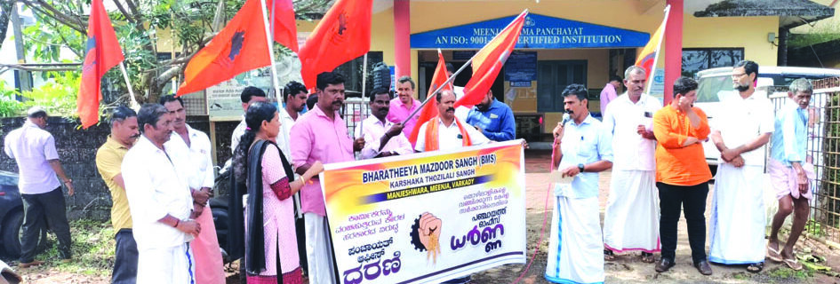 ಬಿ.ಎಂ.ಎಸ್ ಮೀಂಜ ಪಂಚಾಯತ್ ಸಮಿತಿಯಿಂದ ಪಂಚಾಯತ್ ಕಚೇರಿ ಧರಣಿ