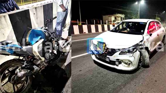 ಬೈಕ್- ಕಾರು ಢಿಕ್ಕಿ: ಹೇರೂರು ನಿವಾಸಿ ಯುವಕನಿಗೆ ಗಂಭೀರ ಗಾಯ
