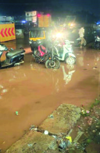 ಹೊಸಂಗಡಿ ಸರ್ವೀಸ್ ರಸ್ತೆಯಲ್ಲಿ ನೀರು ಕಟ್ಟಿನಿಂತು ಸಂಚಾರ ಸಮಸ್ಯೆ