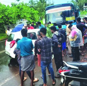 ಮಾವಿನಕಟ್ಟೆಯಲ್ಲಿ ಬಸ್-ಕಾರು ಢಿಕ್ಕಿ: ಕಾರು ಚಾಲಕನಿಗೆ ಗಂಭೀರ