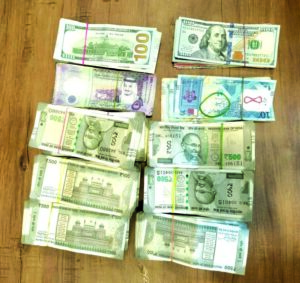 ವಿದೇಶಿ ಕರೆನ್ಸಿ ಸೇರಿ ೧೫ ಲಕ್ಷ ರೂ. ವಶ: ಇಬ್ಬರು ಕಸ್ಟಡಿಗೆ
