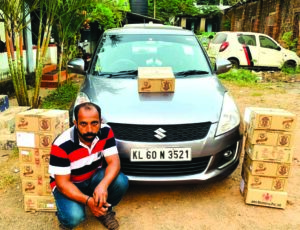 ಕಾರಿನಲ್ಲಿ ಸಾಗಿಸುತ್ತಿದ್ದ ೧೧೨ ಲೀಟರ್ ಕರ್ನಾಟಕ ಮದ್ಯ ವಶ: ಓರ್ವ ಸೆರೆ