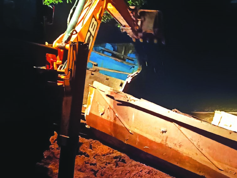 ಅನಧಿಕೃತ ಹೊಯ್ಗೆ ಸಂಗ್ರಹ : ಐದು ದೋಣಿ ವಶಪಡಿಸಿ ನಾಶ