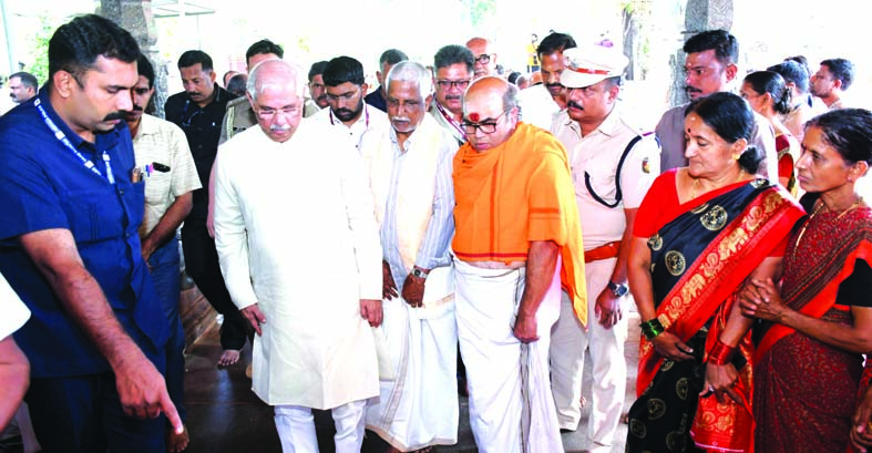 ಕಾಸರಗೋಡು: ಕೇರಳ ರಾಜ್ಯಪಾಲ ರಾಜೇಂದ್ರ ವಿಶ್ವನಾಥ್ ಅರ್ಲೇಕರ್ ನಿನ್ನೆ ಮಧೂರು ಶ್ರೀ ಮದನಂತೇಶ್ವರ ಸಿದ್ಧಿವಿನಾಯಕ ದೇವಸ್ಥಾನಕ್ಕೆ ಸಂದರ್ಶಿಸಿ ಪ್ರಾರ್ಥನೆ ನಡೆಸಿದರು. ಮಧ್ಯಾಹ್ನ ಪೂಜೆಯ ವೇಳೆ ಶ್ರೀ ಕ್ಷೇತ್ರಕ್ಕೆ ಆಗಮಿಸಿದ ರಾಜ್ಯಪಾಲರು ವಿಶೇಷ ಪೂಜೆ ನಡೆಸಿದರು. ಮಾತ್ರವಲ್ಲ ದೇವಸ್ಥಾನದ ಇತಿಹಾಸದ ಬಗ್ಗೆಯೂ ಅವರು ಸಂಬಂಧಪಟ್ಟವರಿಂದ ಕೇಳಿ ತಿಳಿದರು. ಇನ್ನು ಮುಂದೆಯೂ ಶ್ರೀ ಕ್ಷೇತ್ರಕ್ಕೆ ಆಗಮಿಸುವುದಾಗಿ ತಿಳಿಸಿ ಹಿಂತಿರುಗಿದರು.