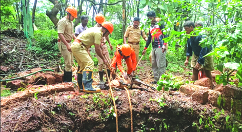 ಪೆರ್ಲ: ಬಾವಿಗೆ ಬಿದ್ದ ಕುಬ್ಜ ತಳಿಗೆ ಸೇರಿದ ದನವನ್ನು ಅಗ್ನಿಶಾಮಕ ದಳದವರು ಮೇಲ ಕ್ಕೆತ್ತಿ ರಕ್ಷಿಸಿದ ಘಟನೆ ಕಾಟುಕುಕ್ಕೆ ಬಳಿ ನಿನ್ನೆ ನಡೆದಿದೆ. ಕಾಟುಕುಕ್ಕೆ ಕಾಂತಾರಿ ಎಂಬಲ್ಲಿನ 31 ಅಡಿ ಆಳದ ಹಾಗೂ ಸುಮಾರು 20 ಅಡಿ ನೀರು ತುಂಬಿದ ಕಟ್ಟೆಯಿಲ್ಲದ ಉಪಯೋ ಗಶೂನ್ಯ ಬಾವಿಗೆ ನಿನ್ನೆ ಬೆಳಿಗ್ಗೆ 10 ಗಂಟೆಗೆ ಈ ದನ ಬಿದ್ದಿದೆ. ತಕ್ಷಣ ಊರವರು ನೀಡಿದ ಮಾಹಿತಿಯಂತೆ ಕಾಸರಗೋಡು ಅಗ್ನಿಶಾಮಕ ದಳದ ಸೀನಿಯರ್ ಫಯರ್ ಆಂಡ್ ರೆಸ್ಕ್ಯೂಂ ಆಫೀಸರ್ ವಿ.ಎನ್. ವೇಣುಗೋಪಾಲ್ರ ನೇತೃತ್ವದಲ್ಲಿ ಫಯರ್ ಆಂಡ್ ರೆಸ್ಕ್ಯೂ ಆಫೀಸರ್ ಜೆ.ಎಸ್. ಅಊಯ್ಸೇನ್ ನೆಟ್ನ ಸಹಾಯದೊಂದಿಗೆ ಬಾವಿಗಿಳಿದು ಅಗ್ನಿಶಾಮಕ ದಳದ ಇತರ ಸಿಬ್ಬಂದಿಗಳಾದ ಜೆ.ಬಿ. ಜಿಜು, ಅತುಲ್ ರವಿ, ಒ.ಕೆ. ಅನುಶ್ರೀ, ಹೋಮ್ಗಾರ್ಡ್ ಪಿ. ಶ್ರೀಜಿತ್ ಸೇರಿ ದನವನ್ನು ಬಾವಿಯಿಂದ ಮೇಲಕ್ಕೆತ್ತಿ ಪ್ರಾಣ ರಕ್ಷಿಸಿದ್ದಾರೆ.