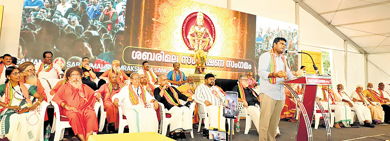ವಿಚಾರಗೋಷ್ಠಿಯ ಬಳಿಕ ಪಂದಳಂ ನಾನಕ್ ಕನ್ವೆನ್ಶನ್ ಸೆಂಟರ್ನಲ್ಲಿ ನಡೆದ ಅಯ್ಯಪ್ಪ ಸಂರಕ್ಷಣಾ ಸಂಗಮ ಕಾರ್ಯಕ್ರಮವನ್ನು ವಾಳೂರು ತೀರ್ಥಾನಂದ ಸ್ವಾಮೀಜಿ ಪ್ರಜ್ಞಾನಂದ ತೀರ್ಥರು ದೀಪ ಬೆಳಗಿಸಿ ಉದ್ಘಾಟಿಸಿದರು. ಶಬರಿಮಲೆ ಅಯ್ಯಪ್ಪ ಸಂರಕ್ಷಣಾ ಕ್ರಿಯಾ ಸಮಿತಿ ಅಧ್ಯಕ್ಷೆ ಕೆ.ಪಿ. ಶಶಿಕಲಾ ಅಧ್ಯಕ್ಷತೆ ವಹಿಸಿದರು. ಅಪರಾಹ್ನ ಕೈಪುಳ ಶ್ರೀವತ್ಸ ಮೈದಾನದಲ್ಲಿ ನಡೆದ ಸಮಾರೋಪ ಸಮಾರಂಭವನ್ನು ಬಿಜೆಪಿಯ ತಮಿಳುನಾಡು ರಾಜ್ಯ ಘಟಕದ ಮಾಜಿ ಅಧ್ಯಕ್ಷ ಅಣ್ಣಾಮಲೈ ಉದ್ಘಾಟಿಸಿದರು. ಕೇರಳ ಮುಖ್ಯಮಂತ್ರಿ ಪಿಣರಾಯಿ ವಿಜಯನ್ ನಾಸ್ತಿಕರಾದ ಓರ್ವ ನಾಟಕಗಾರರೆಂದು ಅವರು ಆರೋಪಿಸಿದರು.
