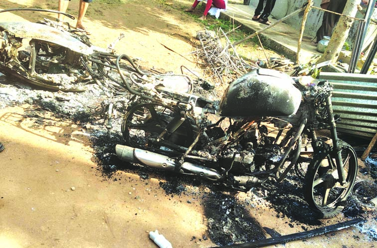 ಶಾರ್ಟ್ ಸರ್ಕ್ಯೂಟ್: ಮೂರು ದ್ವಿಚಕ್ರ ವಾಹನ, ಶೆಡ್ ಸಹಿತ ವಿವಿಧ ಉಪಕರಣಗಳು ಬೆಂಕಿಗಾಹುತಿ