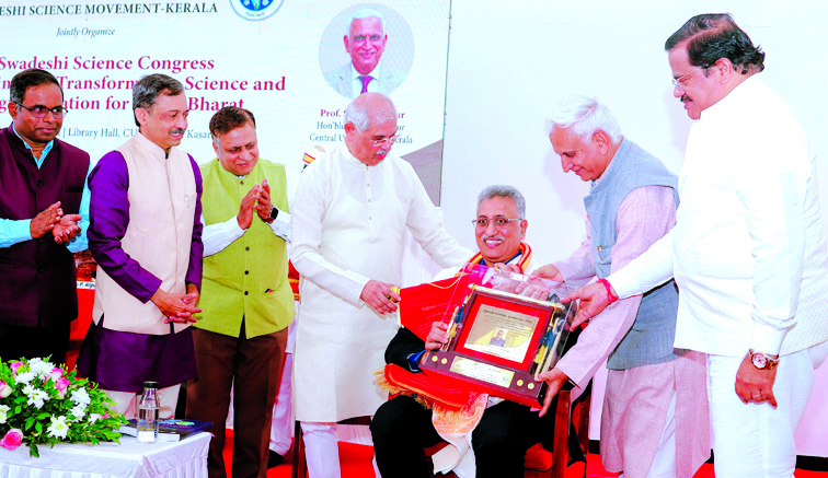 ಕಾಸರಗೋಡು: ವಿಜ್ಞಾನ ತಾಂತ್ರಿಕ ಅಧ್ಯಯನ ವಲಯದಲ್ಲಿ ಉತ್ತಮ ಕೊಡುಗೆಗಳನ್ನು ನೀಡುವ ಕೇರಳೀಯ ವಿಜ್ಞಾನಿಗಳಿಗಿರುವ ಸ್ವದೇಶಿ ಶಾಸ್ತ್ರ ಪುರಸ್ಕಾರವನ್ನು ರಾಜೀವ್ ಗಾಂಧಿ ಸೆಂಟರ್ ಫಾರ್ ಬಯೋಟೆಕ್ನೋ ಲಜಿಯ ಮಾಜಿ ನಿರ್ದೇಶಕ ಡಾ. ಚಂದ್ರಭಾಸ್ ನಾರಾಯಣ, ಇಂಡ್ಯನ್ ನ್ಯಾಶನಲ್ ಸೆಂಟರ್ ಫಾರ್ ಓಷ್ಯನ್ ಇನ್ಫರ್ಮೇಶನ್ ಸರ್ವೀಸ್ ನಿರ್ದೇಶಕ ಡಾ. ಟಿ.ಎಂ. ಬಾಲಕೃಷ್ಣನ್ ನಾಯರ್ ಎಂಬಿವರಿಗೆ ರಾಜ್ಯಪಾಲ ರಾಜೇಂದ್ರ ವಿಶ್ವನಾಥ ಅರ್ಲೇಖರ್ ಪ್ರದಾನ ಮಾಡಿದರು.