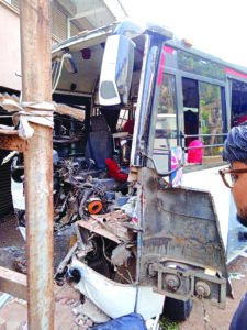 ಟೂರಿಸ್ಟ್ ಬಸ್ ಗೋಡೆಗೆ ಢಿಕ್ಕಿ ಹೊಡೆದು ಅಪಘಾತ : ಆರು ಮಂದಿಗೆ ಗಾಯ